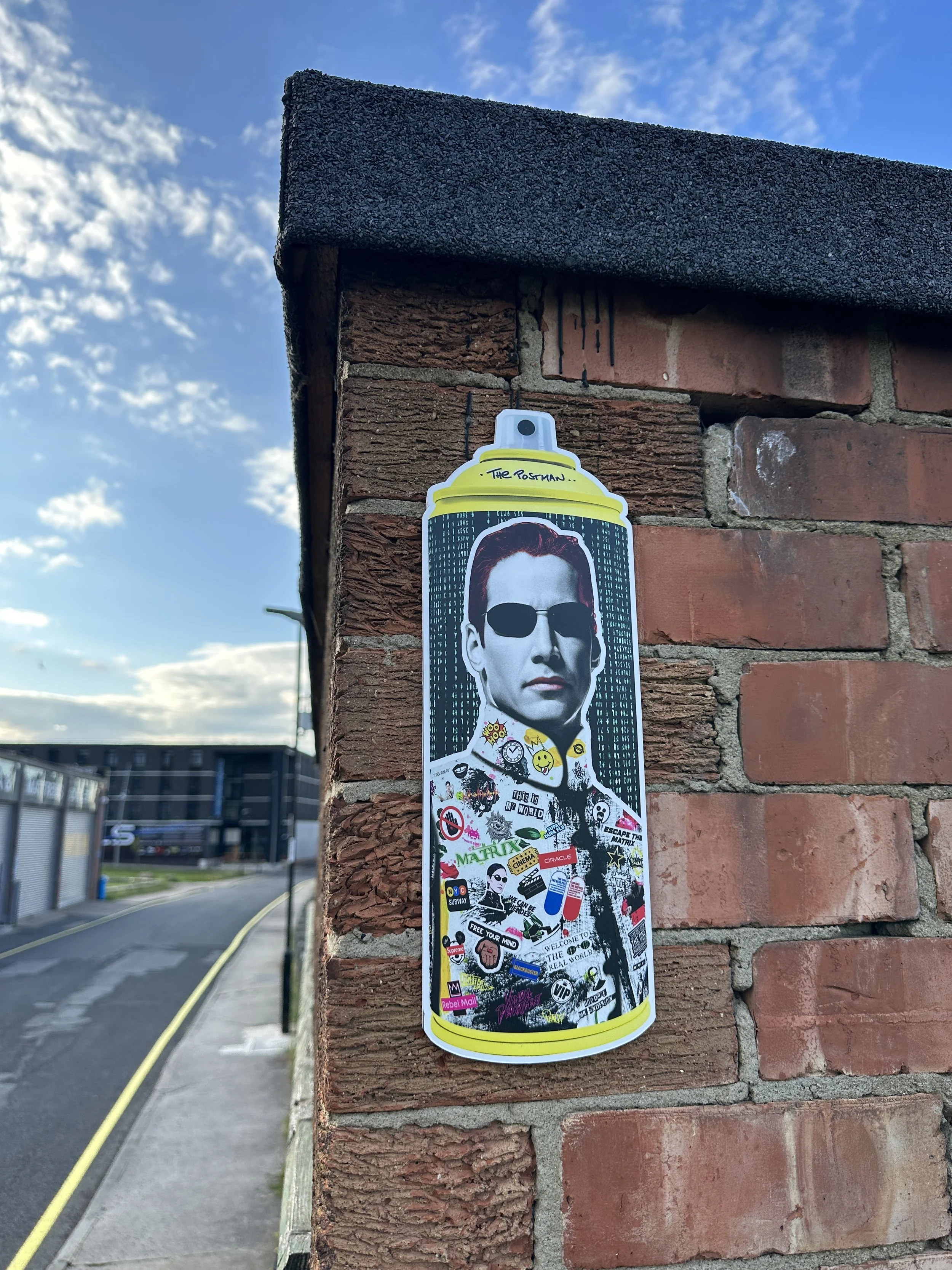 During the launch of the programme in July 2023, The Future Walls team commissioned celebrated duo The Postman to come and install over 20 mini-murals. Intentionally circulated in the heart of Sunderland’s creative community, the temporary murals have been installed all over the Sunniside district. Some of the pieces are hard to miss as people navigate the area, but some of them are harder to spot and found in unusual places.